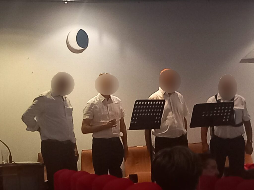 Les frères dunkerquois, dont les visages ont été volontairement floutés par respect des règles de dévoilement, du collectif In Varietate Concordia nous ont littéralement époustouflés par l’interprétation de plusieurs chants, parmi lesquels :