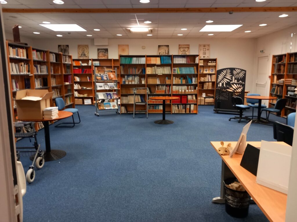 Afin que les frères puissent documenter leurs travaux et préparer leurs planches symboliques à présenter en tenue, la Maison des Associations dispose d’une bibliothèque conséquente, riche de plus de 2 000 livres, revues et documents, qu’ils soient contemporains, anciens ou même très anciens.