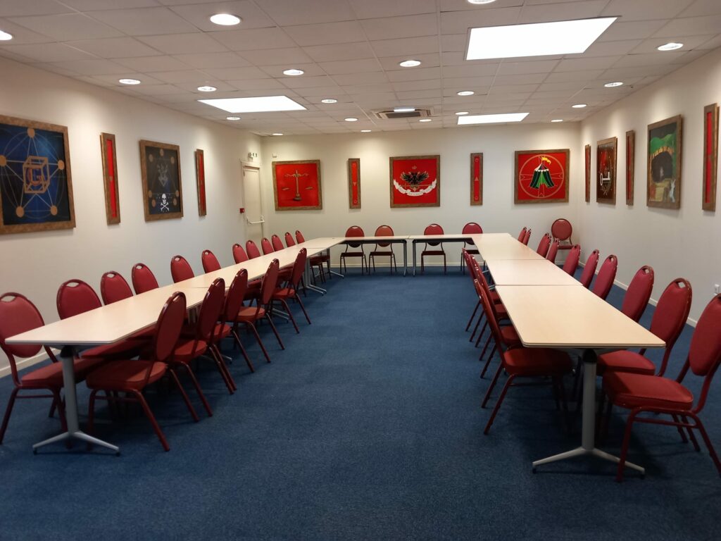 Ses murs sont ornés de magnifiques toiles symboliques illustrant les 33 degrés du Rite Écossais Ancien et Accepté.