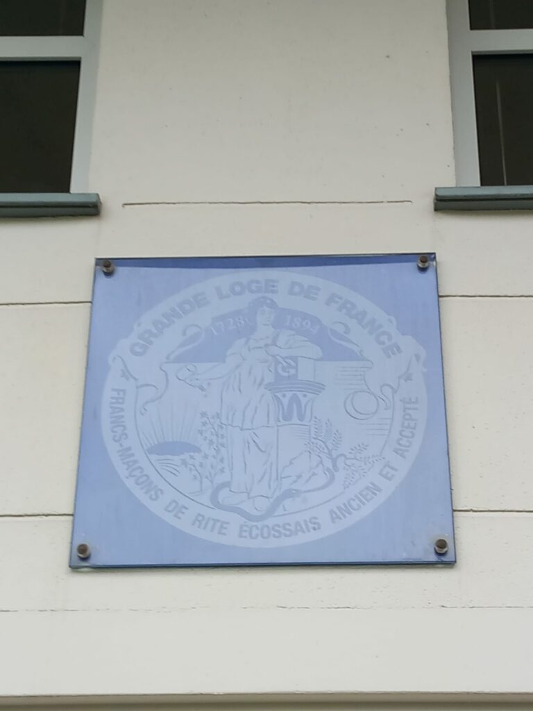 Le sceau de Grande Loge de France est présent sur le fronton de l’entrée.